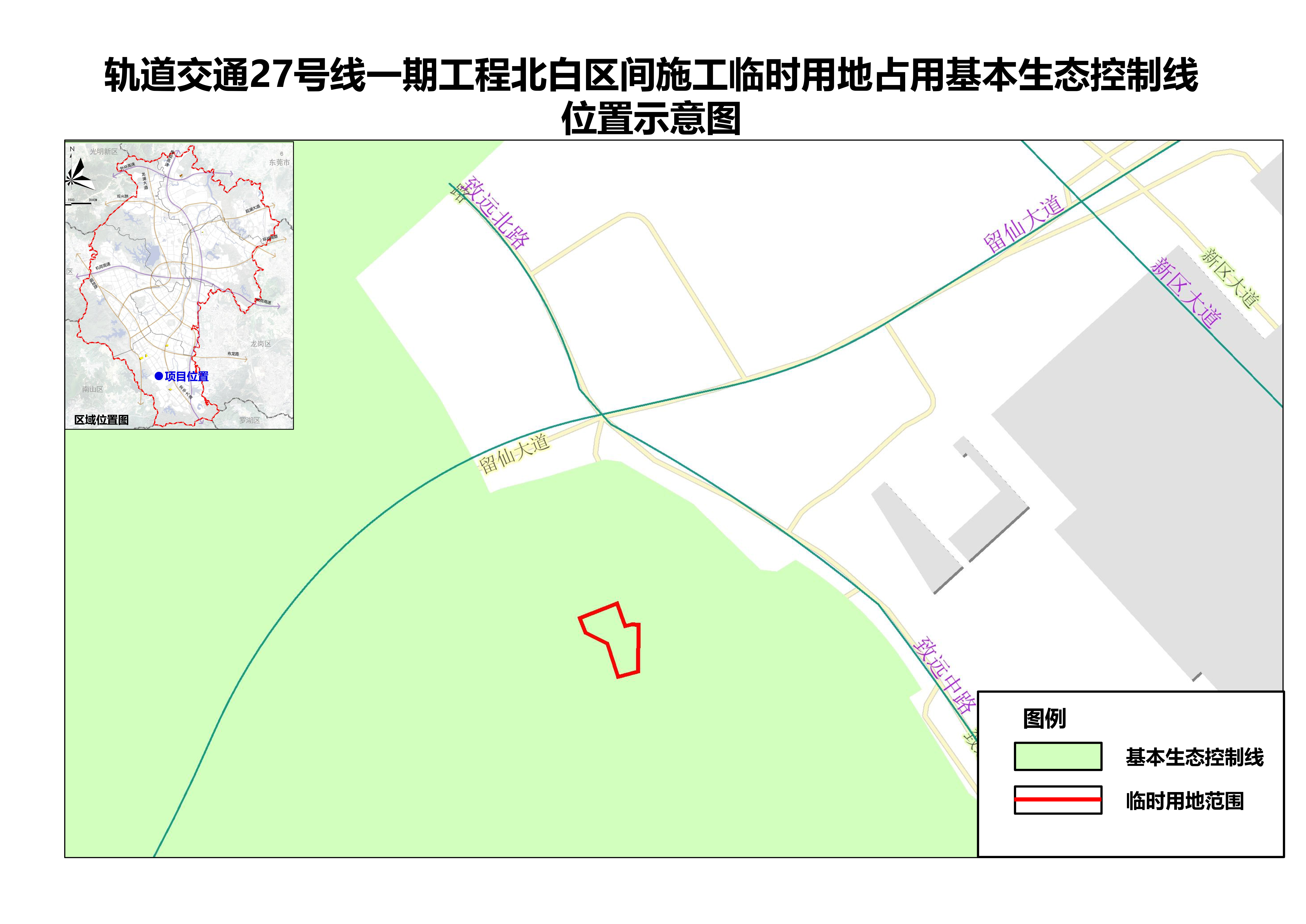 深圳市交通运输局、地铁集团有限公司申请办理轨道交通27号线一期工程北白区间施工临时用地审批手续。该临时用地位于龙华区民治街道深圳北站留仙大道与致远中路西南角,拟作为临时办公用房、生活用房,用地面积2055.33平方米,建筑面积1875平方米,使用期限4年。该临时用地全部位于基本生态控制线范围内。