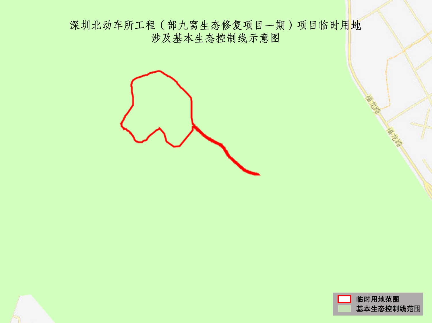 附件:深圳北动车所工程(部九窝生态修复项目一期)项目临时用地涉及占用基本生态控制线示意图