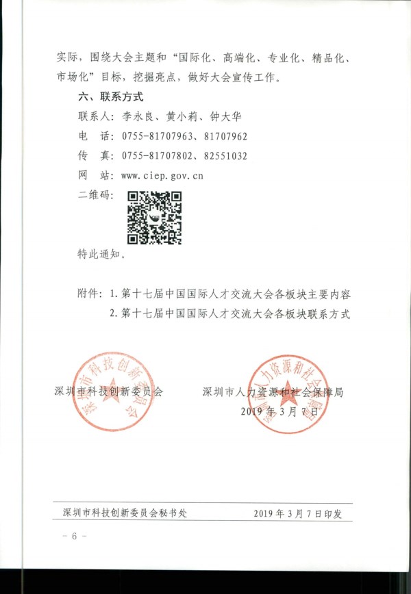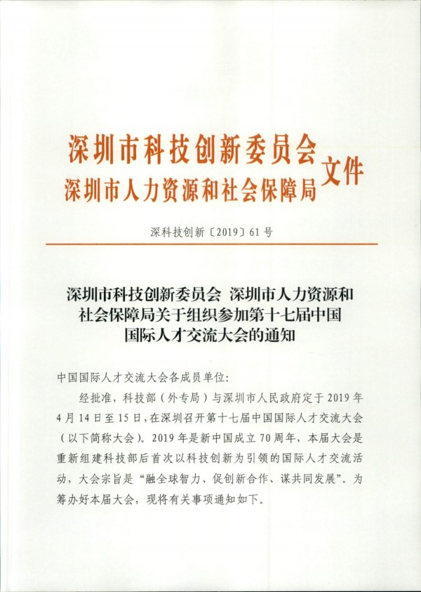 深圳市科技创新委员会 深圳市人力资源和社会保障局关于组织参加第十七届中国国际人才交流大会的通知