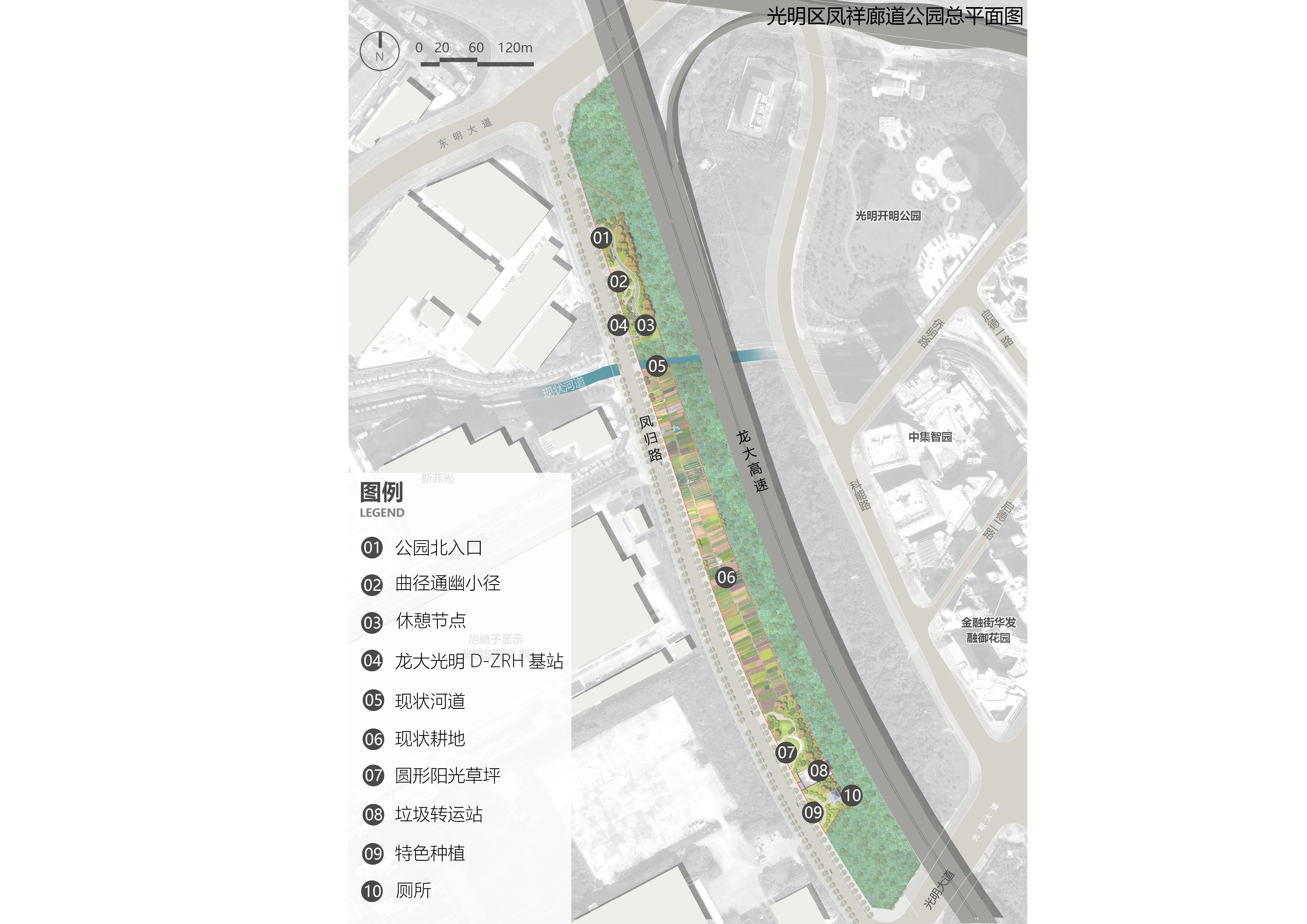 凤祥廊道公园项目位于光明区凤凰街道凤归路以北,用地面积23427.53平方米。