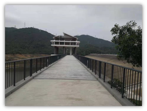 4.项目简介:梅林水库位于深圳市福田区梅林街道,位于新洲河上游,水库总库容1369.92万立方米,是一座集防洪、应急储备和供水调蓄为一体的综合性中型水库,水库设计洪水标准为50年一遇,校核洪水标准为1000年一遇。梅林水库正常蓄水位为58.60米,正常库容为1306.90万立方米,设计洪水位59.13米,校核洪水位为59.46米。水库枢纽建筑物有大坝、溢洪道、放水涵管各一座,大坝为均质土坝,坝顶高程60.5米,最大坝高36米,坝长596米。溢洪道设在大坝右坝端,进口控制端为开敞式,设一孔弧形闸门控制,进口底高程为52米,进口闸室段净宽4.2米。放水涵管位于右坝端,为钢管外包钢筋砼结构,管身内径为1.6米,最大输水流量为5.5立方米/秒。概算批复总投资为2588万元。