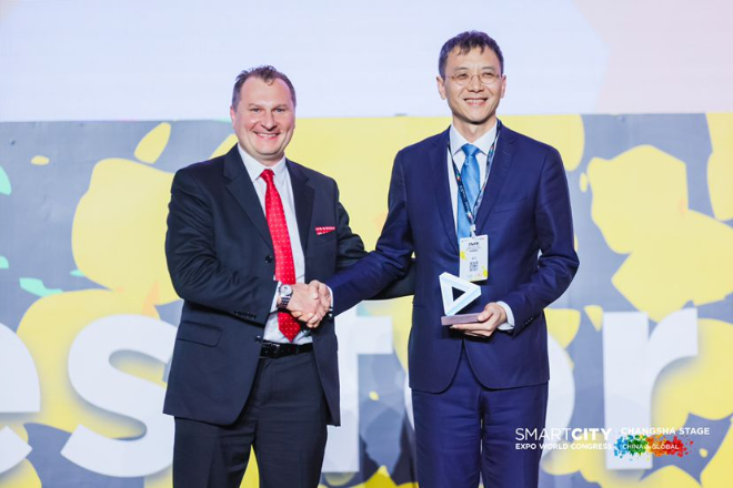 11月1日,“2023世界智慧城市大会·中国”决赛开锣,福田区的“全域治理·河套智慧园区”项目经过层层角逐,从544个项目中脱颖而出,荣获“场景驱动倡议大奖”,福田区副区长朱江从世界可持续智慧城市组织高级顾问 Danil kerimi 手中接过奖杯,是本次大赛深圳唯一获奖项目。