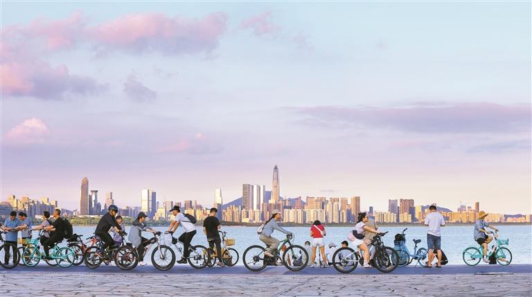 随着十五运会临近,深圳群众体育热情持续升温。初秋的深圳湾畔,随处可见骑行、跑步、徒步的市民身影,他们与绽放的鲜花、翩飞的海鸟、摇曳的红树林,以及远处不断生长的城市天际线共同构成一幅生机盎然的都市画卷。