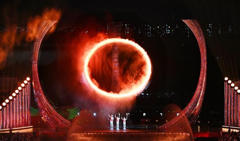 21时27分,第十五届全运会开幕式在主题歌《天海一心》掀起的热烈气氛中圆满结束。