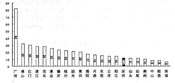 1999年深圳市人均用水量778升/人•日;万元GDP(当年价)用水量54.3立方米。深圳市在全省用水量排位见图1。