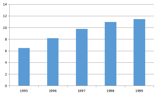 图3 深圳市1995-1999年度用水量